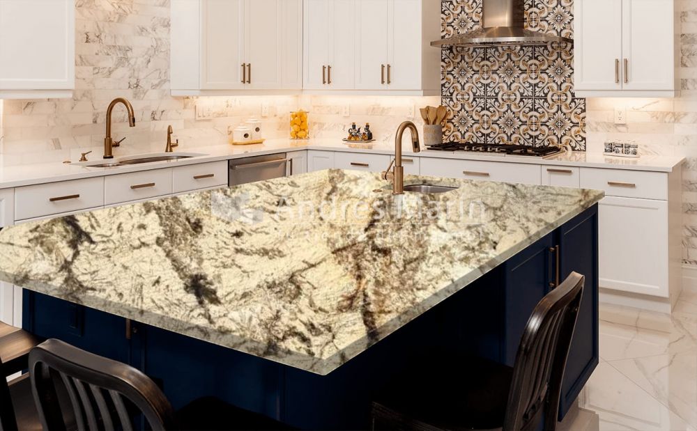 Alpinus Quartzite is a strong and durable natural stone. It features a combination of beige, gray, brown, and black colors. We manufacture polished kitchen and bathroom countertops at the best competitive price.
